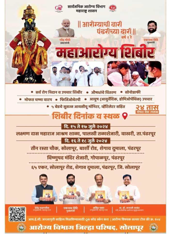 सोलापूर( दै.पंढरी नगरी न्यूज)- मुख्यमंत्री एकनाथ शिंदे हे दिनांक 16 व 17 जुलै 2024 रोजी पंढरपूर जिल्हा सोलापूर दौऱ्यावर येत असून त्यांचा दौरा पुढीलप्रमाणे राहील.