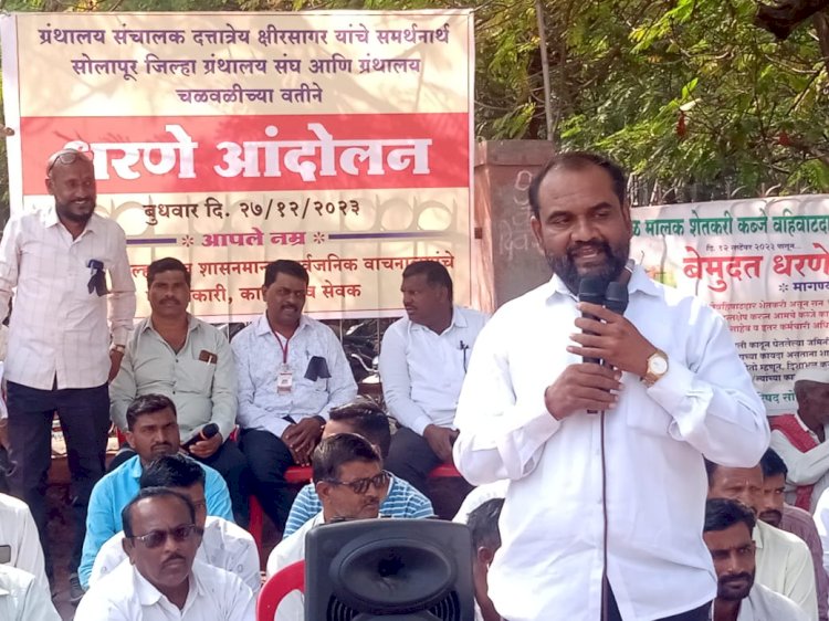 ग्रंथालय संचालक दत्तात्रय क्षीरसागर यांचे वरील अन्यायाविरोधात जिल्हा ग्रंथालय संघाच्या वतीने जिल्हाधिकारी कार्यालयासमोर धरणे आंदोलन... शासनमान्य ग्रंथालयाने १ दिवस ग्रंथालये बंद ठेवून दिला पाठिंबा