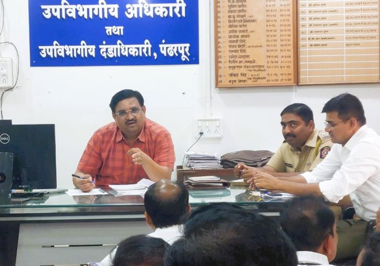 आषाढी यात्रा पूर्व नियोजनाबाबत प्रांत कार्यालय पंढरपूर येथे बैठक घेण्यात आली या बैठकीस उपविभागीय पोलीस अधिकारी डॉ. अर्जुन भोसले, तहसिलदार सचिन लंगुटे, उपजिल्हा रुग्णालयाचे वैद्यकीय अधिक्षक डॉ. महेश सुडके, तालुका आरोग्य अधिकारी डॉ. एकनाथ बोधले, उप कार्यकारी अभियंता भिमाशंकर मेटकरी, नायब तहसिलदार मनोज, श्रोत्री, उपमुख्याधिकारी सुनिल वाळुंजकर, मंदीर समितीचे व्यवस्थापक बालाजी पुदलवाढ, महावितरणचे श्री. भोळे यांच्यासह संबधित विभागाचे अधिकारी उपस्थित होते.