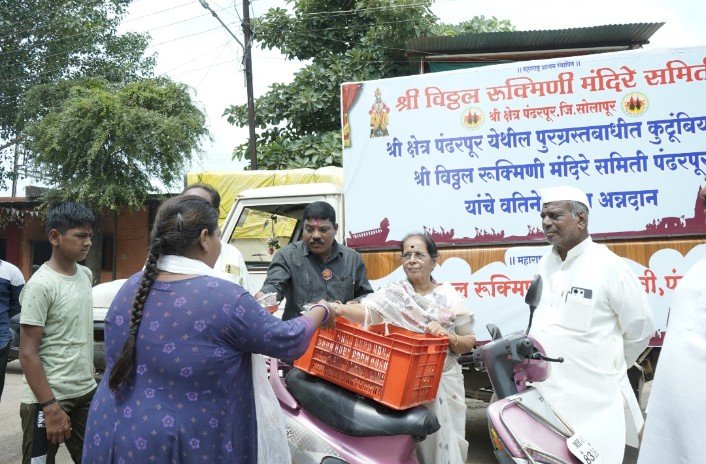 मंदिर समितीने सामाजिक उत्तरदायित्व व मानवतावादी भूमिकेतून तसेच स्थानिक प्रशासनाने विनंती केल्याने पंढरपूर शहरातील सुमारे 500 स्थलांतरीत रहिवाश्यांना सकाळी नाष्टा, दुपारी जेवण व रात्री जेवण असे 3 वेळा फुड पॅकेट वाटप करण्यास सुरवात करण्यात आली आहे. त्याचा शुभारंभ आज दिनांक 06 ऑगस्ट रोजी मंदिर समितीच्या सदस्या शकुंतला नडगिरे व ह.भ.प.ज्ञानेश्वर देशमुख (जळगांवकर) यांच्या हस्ते करण्यात आला.