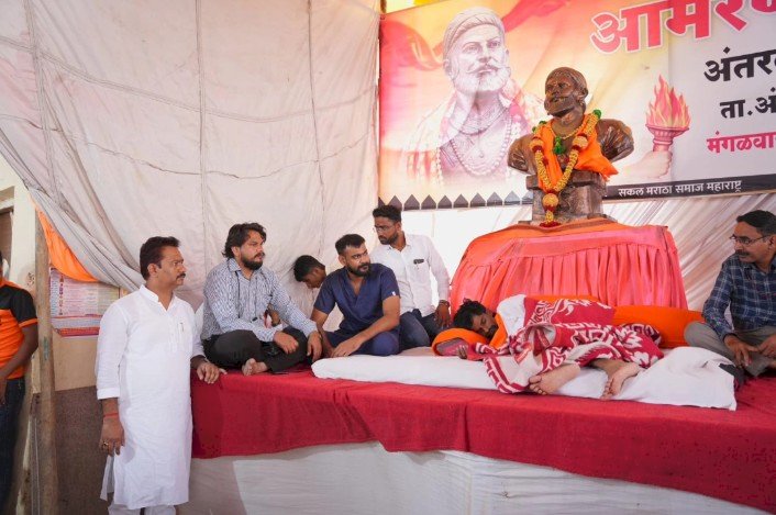 संघर्ष योद्धा मनोज जरांगे पाटील यांच्या आमरण उपोषणाला भेट दिली असता त्यांची तब्येत खालावली असून बोलायला, बसायला सुध्दा त्राण उरला नाही..मनं सुन्न झालं! मराठा समाजाच्या लेकरांच भलं व्हावं म्हणून तडफडणारा जीव बघितला. मनोजदादा आपण काळजी घ्या; आपली समाजाला गरज आहे. महाराष्ट्रातील तमाम मराठा समाज बांधवांच्या भावना जोडल्या गेल्यामुळे सरकारने त्यांच्या उपोषणाची तात्काळ दखल घेऊन मराठा समाजाच्या मागण्या मान्य कराव्यात आणि समाजाला न्याय द्यावा.हि कळकळीची विनंती अभिजीत पाटील यांनी केली.