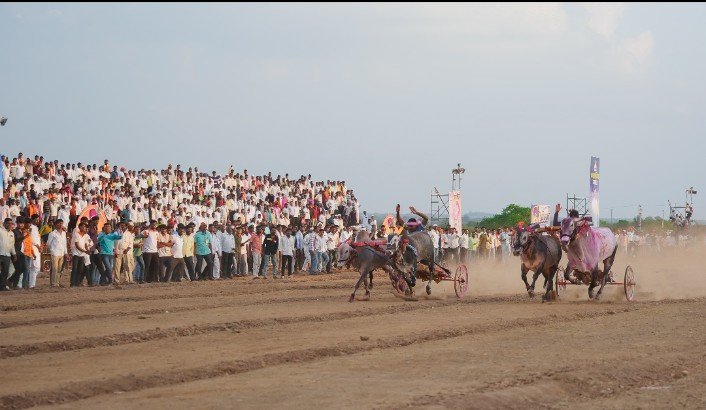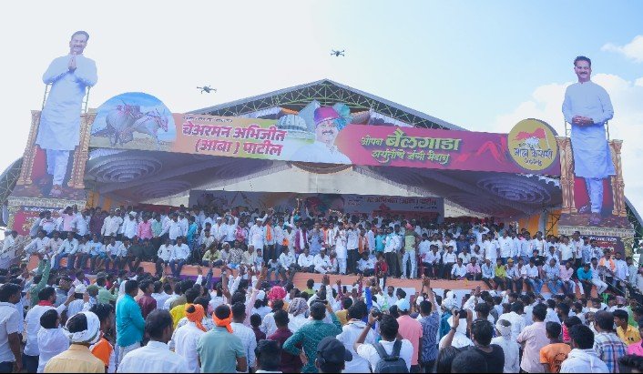 माढा (दै.पंढरी नगरी न्यूज ) माढा विधानसभा मतदारसंघात विठ्ठल साखर कारखान्याचे चेअरमन अभिजीत पाटील यांनी सामाजिक कार्यक्रमांच्या धडाका लावला आहे. शनिवारी बावी येथे ओपन बैलगाडा शर्यतीच्या मैदानाने मोठी धमाल केली. सुमारे दहा हजार बैलगाडा शर्यत शौकिनांनी या कार्यक्रमास हजेरी लावल्याचे दिसून आले. बैलगाडा शर्यतीतील बैलांनी अक्षरशः धुरळा उडवून दिला.