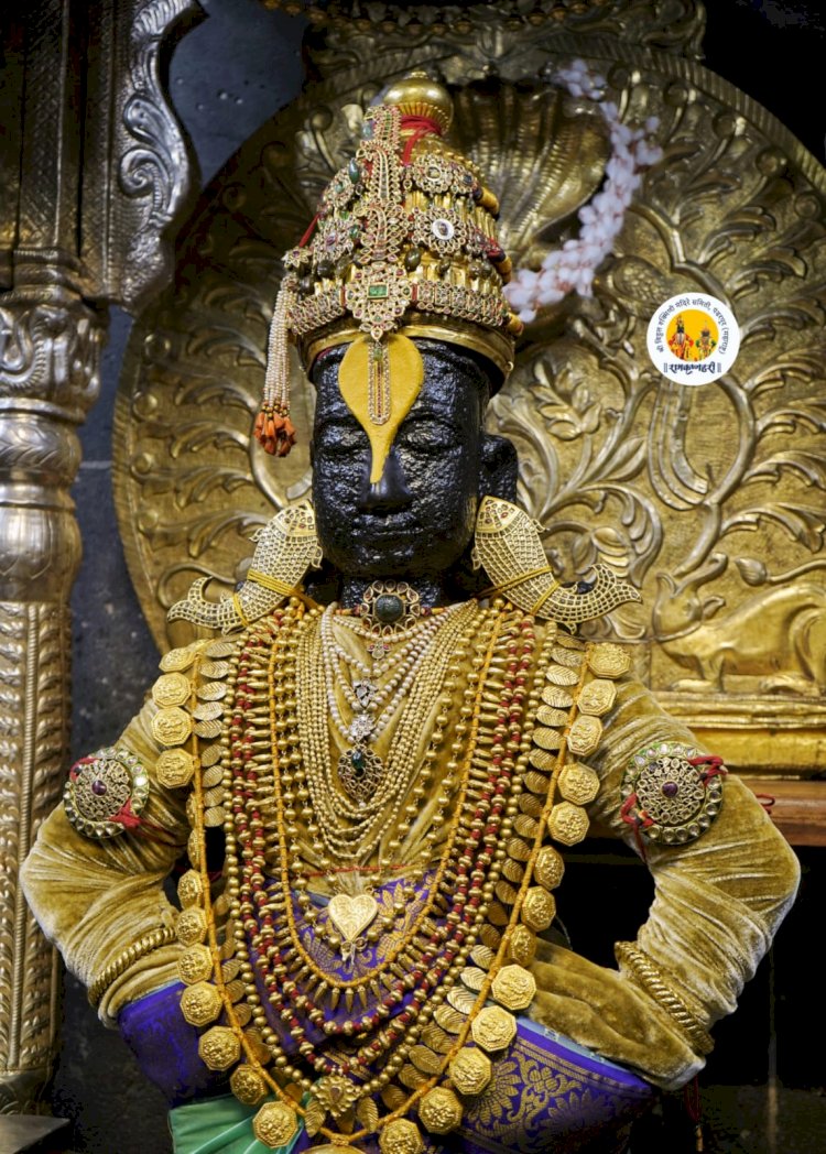 श्री विठ्ठलास सोन्याचा मुकुट, कौस्तुभ मणी, दंडपेठ्या जोड, हिऱ्यांचा कंगनजोड, नाम इमिटेशनचा, मोत्याचा तुरा, मोत्याची कंठी, शिरपेच, मत्स जोड, तोडे जोड, जवेची माळ, तांदळया हार, एकदाणी, तुळशीची माळ, हायकोल , सूर्यकळ्याचा हार तसेच रुक्मिणी मातेस सोन्याचा मुकुट, जडावाचा हार, खड्याची वेणी, पाचूची गरसोळी, हिरवी चिंचपेटी, पावड्याचा हार, दशावतारीहार, ठूशी, लहान सरी, सोन्या मोतीची तानवड जोड, सूर्य, पेट्याची बिंदी, मन्यामोत्याच्या पाटल्या जोड, सोन्याचे बाजूबंद जोड, मत्स्य जोड, रुळजोड, पैंजणजोड, मोठी नथ, कर्णफुले जोड, तारामंडल अलंकार परिधान करण्यात आलेले आहेत.तसेच राधिका मातेस नक्षी मुकुट, मोहरांची माळ, तांबडी चिंचपेटी, जव्याची माळ, हायकोल व सत्यभामादेवीला नक्षी टोप, लक्ष्मी हार, जवमनी पदक, जवेची माळ, पुतळ्याची माळ इत्यादी अलंकार व प्रथा परंपरेप्रमाणे पोशाख परिधान करण्यात आलेले आहेत.
