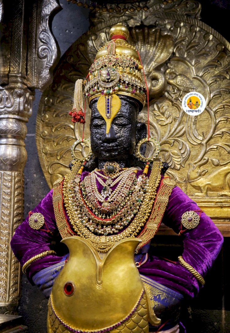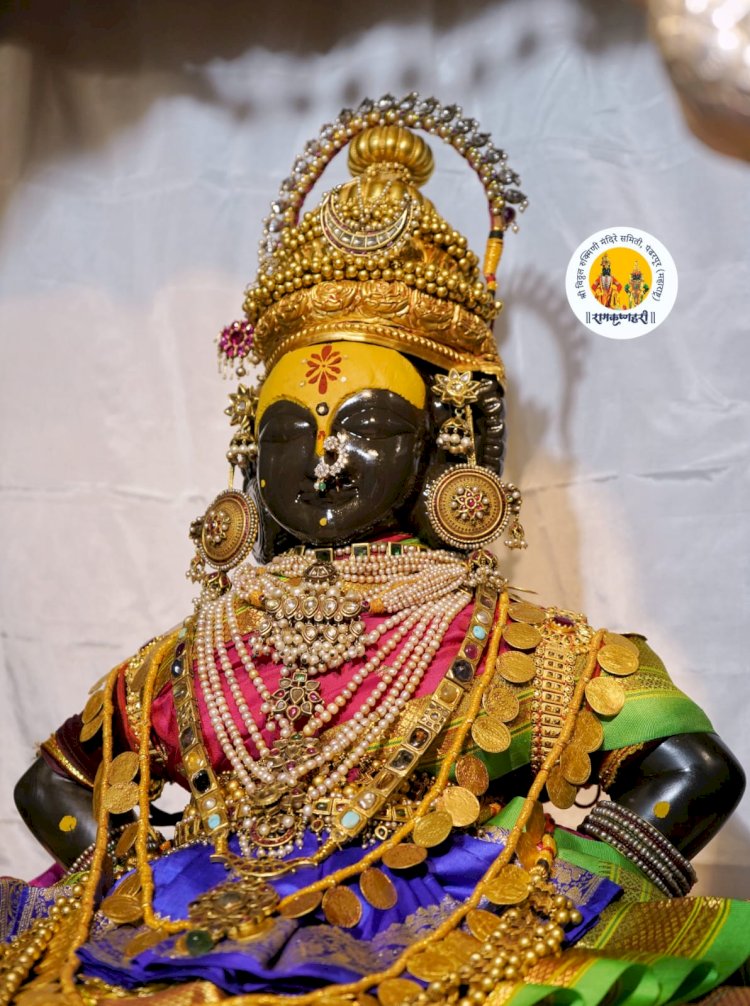 पंढरपूरच्या विठ्ठल मंदिरातील नवरात्र महोत्सव: सातवी माळ. श्री विठ्ठलास अलंकार, रूक्मिणी मातेस पारंपारिक पसरती बैठक पोषाखासह अलंकार परिधान,