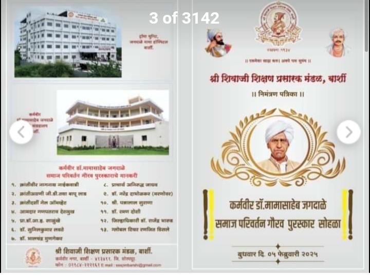शिक्षणसंस्थेतूनच ग्रामविकास साधला जातो - चंद्रकांत दळवी बार्शीच्या डॉ .कर्मवीर जगदाळे( मामा )जयंती महोत्सव निमित्त कार्यक्रम, संस्थेतील गुणवंत व सेवानिवृत्त आदर्श कर्मचाऱ्यांचा पुरस्कार प्राप्त शाळांचा यथोचित सत्कार संपन्न..