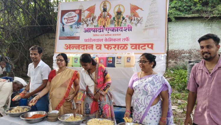 पंढरीत आषाढी यात्रा सोहळ्यात खंडेलवाल केमिकल तर्फे अन्नदान व फराळाचे वाटप ◼️ हजारो वारकरी भाविकांनी घेतला फराळाचा लाभ यंदाचे 5 वे वर्ष ◼️ खंडेलवाल कंपनी यांचा सामाजिक उपक्रम समाजाला दिशा देणारा